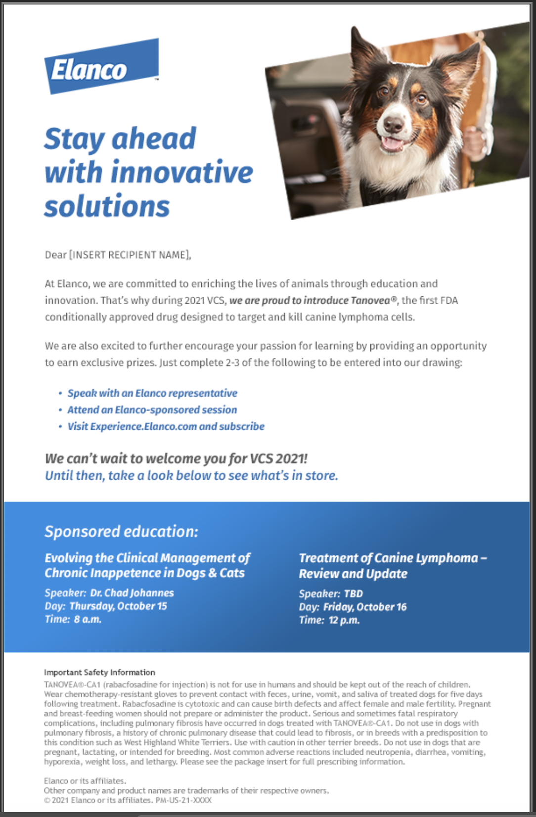 Explore detailed summaries of presentations delivered by leading scientists during the 2021 Veterinary Cancer Society (VCS) conference, and CRM email promotional materials.